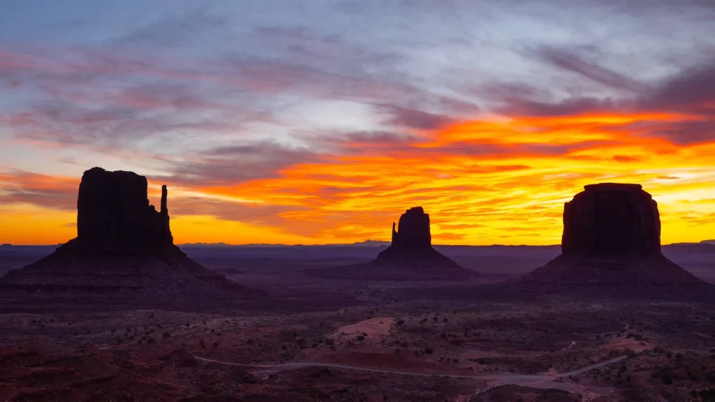 Located on the border of Utah and Arizona, this iconic landscape with massive, sacred buttes belongs to the Navajo Nation, who manage and protect it as Monument Valley Navajo Tribal Park.